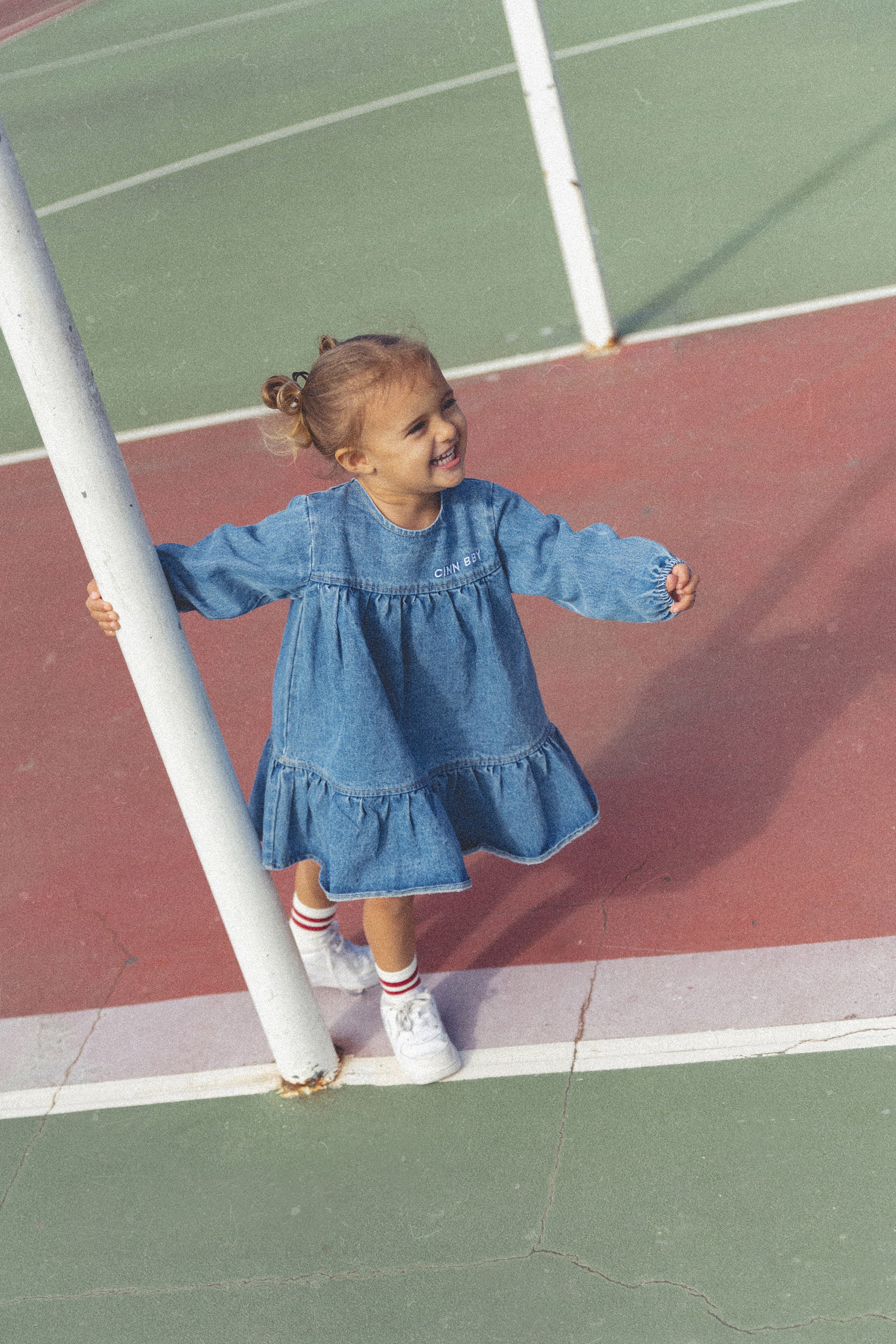 Step back into the 90s with this adorable denim dress, perfect for creating nostalgic memories with your little one. We love how this style mirrors the classic denim dresses we cherished in our own childhood. The dress is versatile—wear it as is for a timeless look, or add a personal touch with our fun iron-on patches, including our signature Cinn Bby Logo.