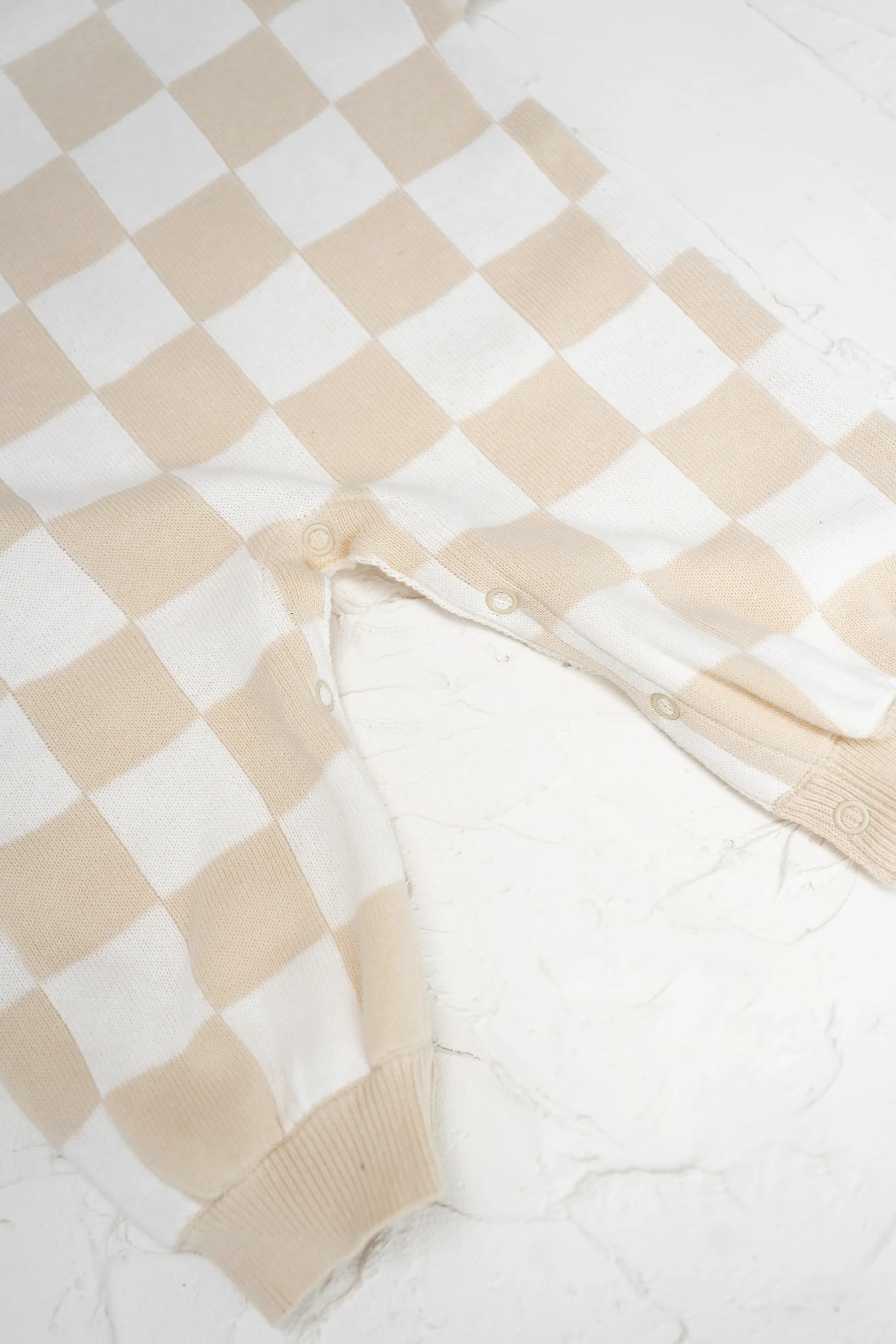 Our knitted rompers, crafted with comfort in mind. These rompers feature a stretchy fabric for ease of movement and a cozy fit, perfect for your little one's everyday adventures. The oversized design adds a trendy touch while ensuring plenty of room for movement and growth. Plus, the snap button crutch detailing makes changing your little one a breeze, whether you're at home or on the go.