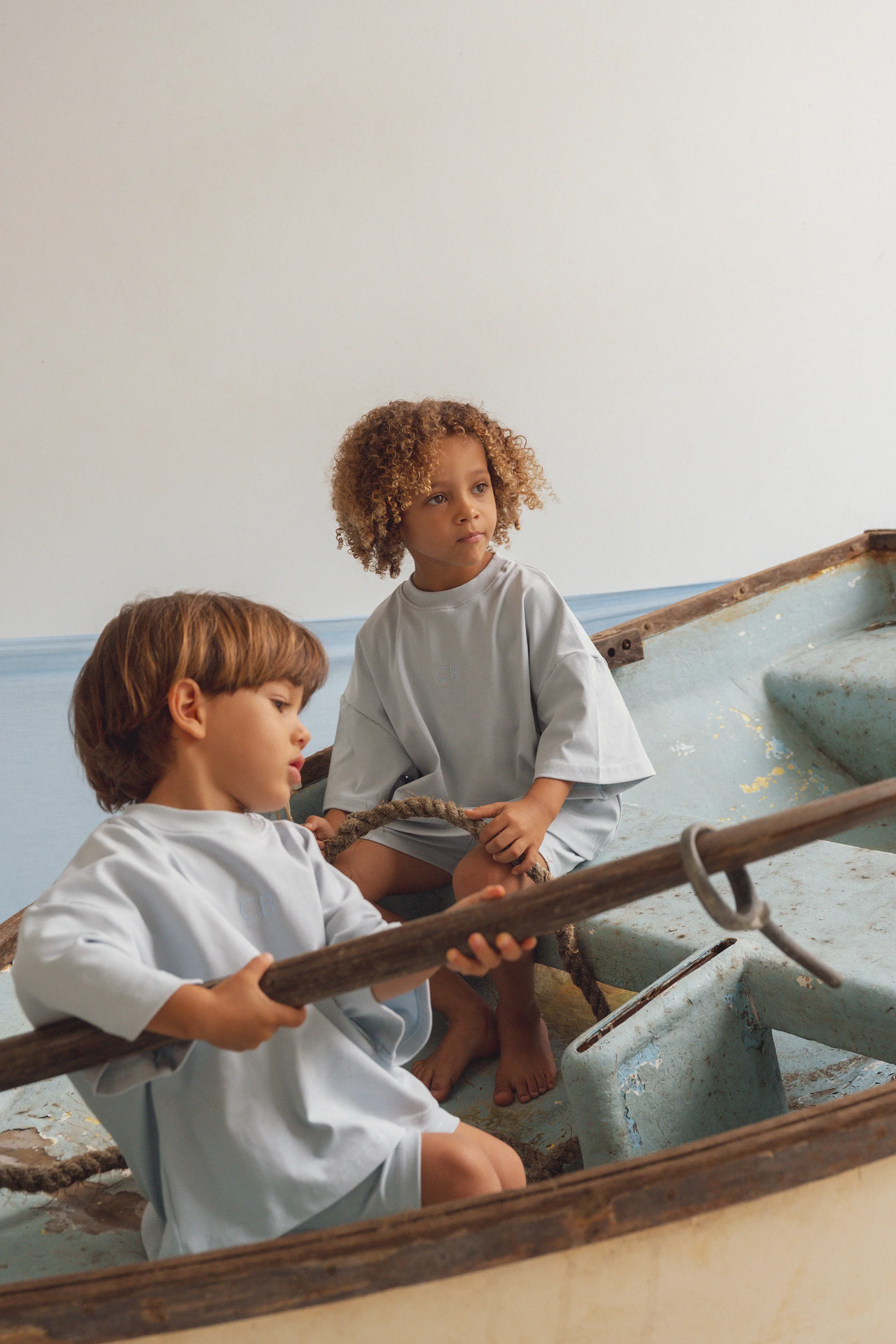 Simple and soothing, this tonal blue set is made for relaxed days. The soft tee and elastic-waist shorts are perfect for everyday adventures.
