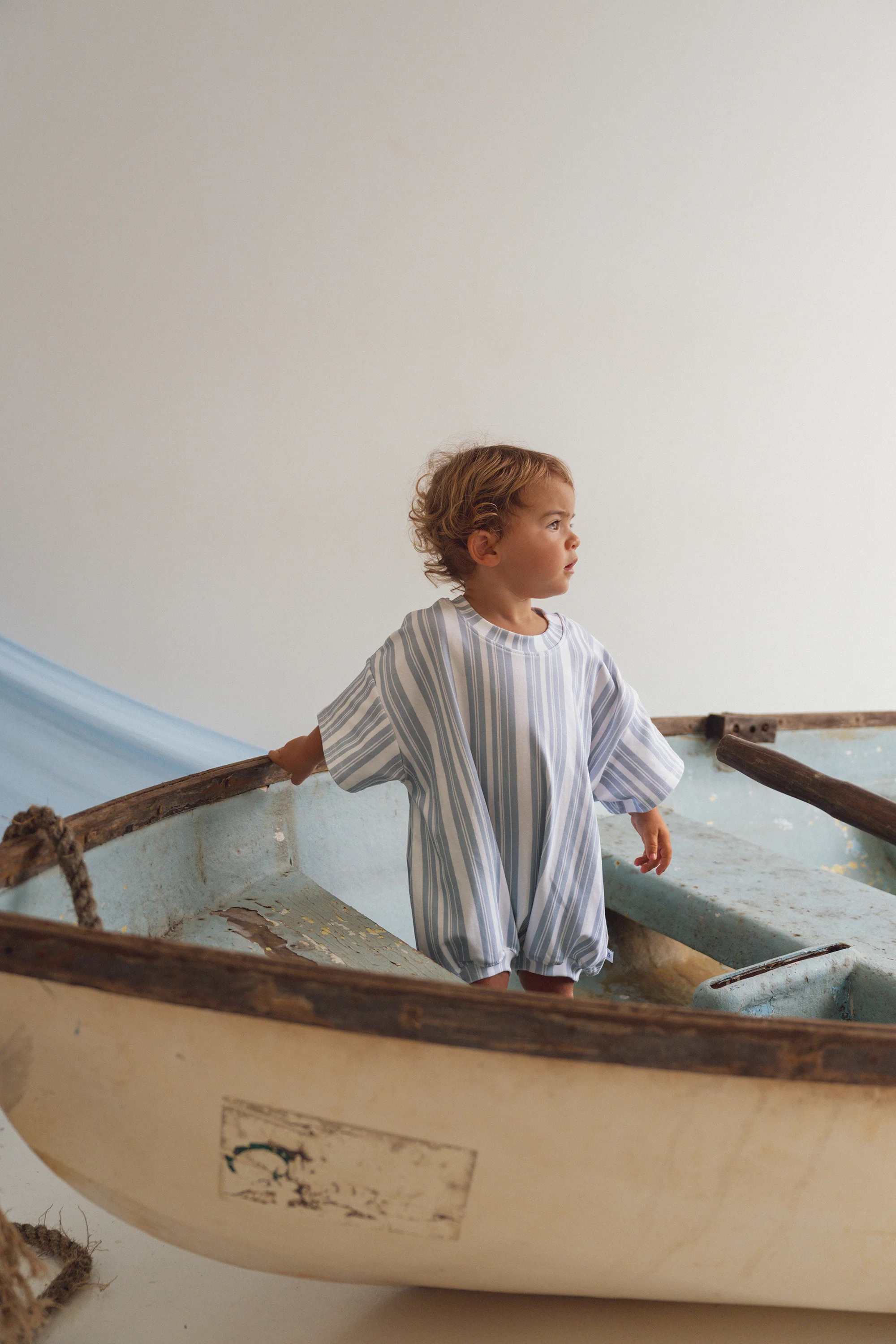 A soft, easy romper in classic blue stripes, made for play, rest, and everything in between. Designed with a relaxed fit and snap openings for all-day comfort and quick changes.