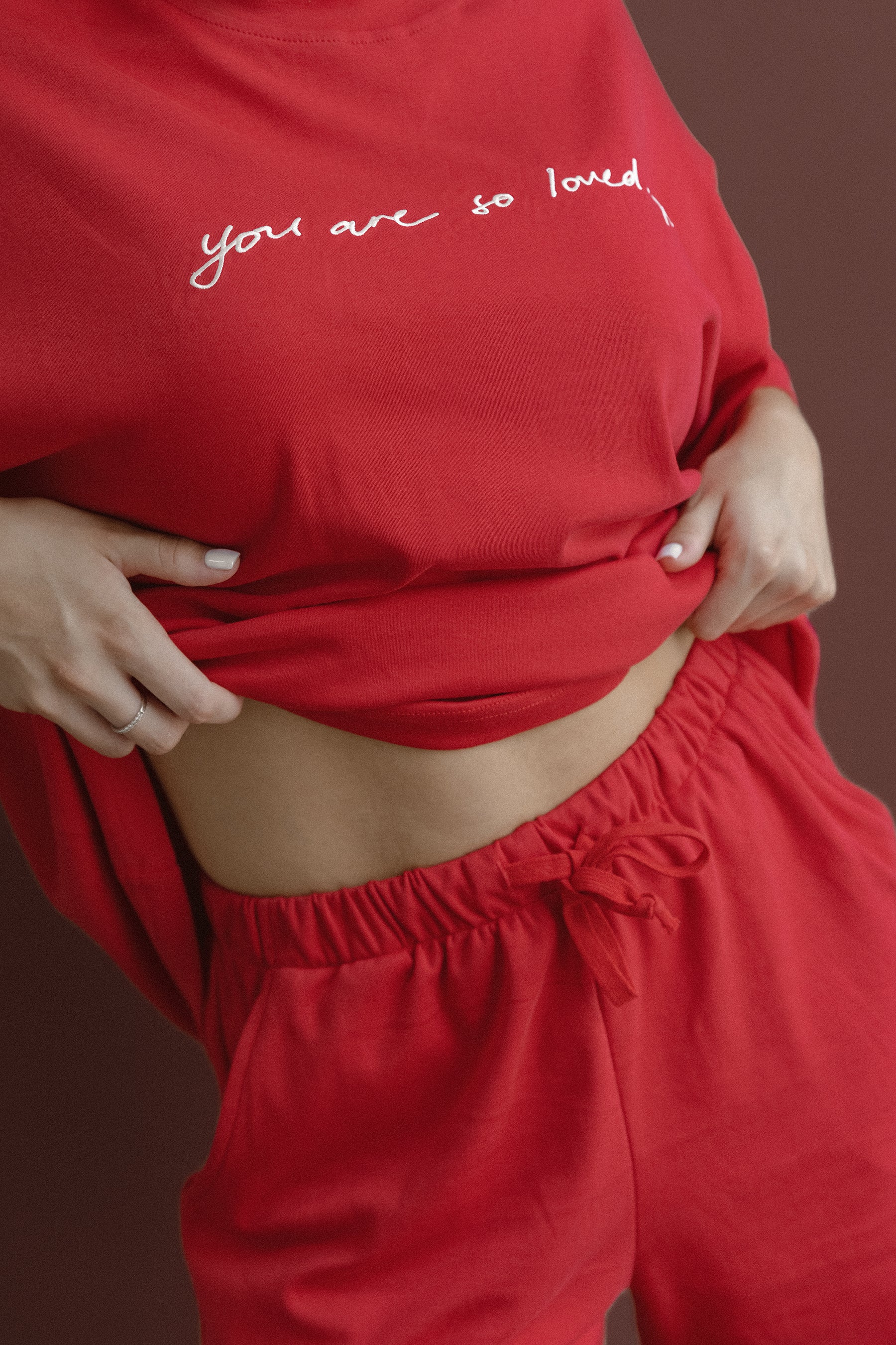 Our Womens You are so loved Tee are perfect for comfort with our unique embroidered design. Made from 92% cotton, 8% spandex. They are a relaxed fit. Made to mix and match in our Love Letters collection or can be worn as a set